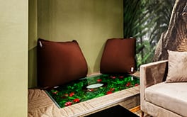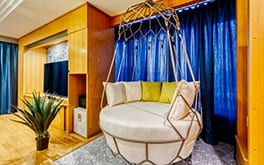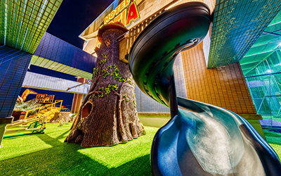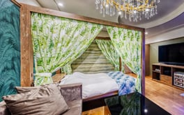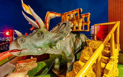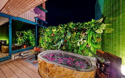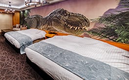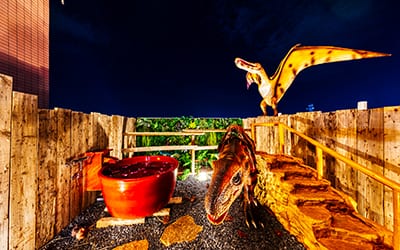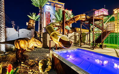 ウォータースライダーや露天風呂など、“非日常なエンターテイメント”をテーマにした施設をご用意。 恐竜ライドやウォータースライダー、プラネタリウムやゴルフシュミレータなどを設置したお部屋でよりアクティブに楽しもう!